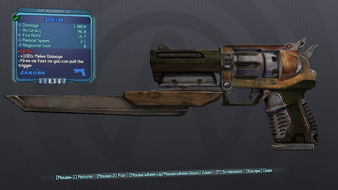 [ She pulls the latter out of her holster and holds it out for him to inspect, by the barrel. ]